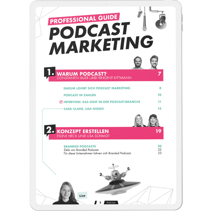 Egal ob du Podcasts als Vermarktungskanal nutzt oder dich für einen Branded Podcast entscheidest: In diesem Guide geben wir dir wertvolle Tipps, Checklisten und Beispiele an die Hand, um deinen Podcast-Auftritt zu professionalisieren und erfolgreich zu kommerzialisieren.